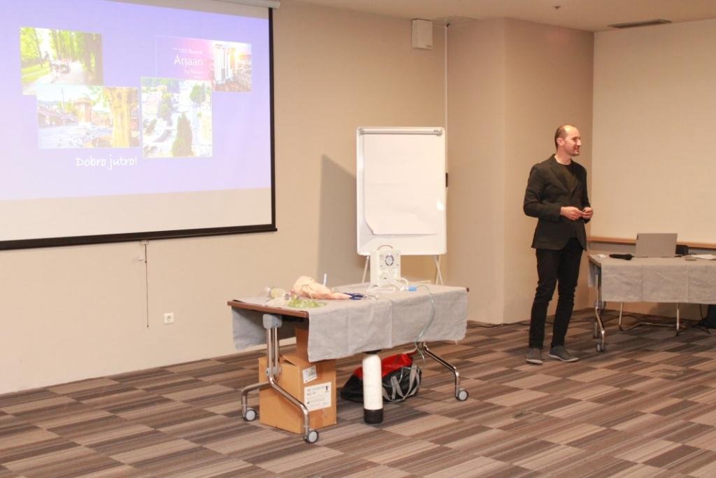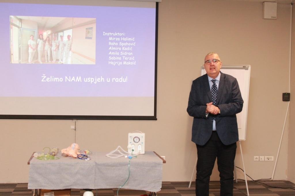Ispred KCUS učesnicima se obratio prim. dr.sci.med Sanko Pandur, v.d. discipline za nauku i nastavu,ukazujući na neprocjenjivu vrijednost vještina i znanja iz oblasti neonatalne reanimacije.