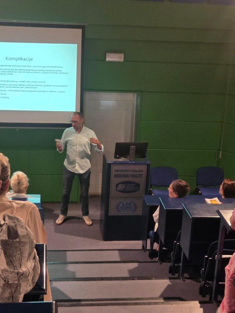 Prisutnim se obratila i prof. dr. Hajrija Maksić v.d. generalna direktorica KCUS-a, a predavanja su održali dr. Mirela Čizmić (KCUS), i Vladimir Žuržulović, predsjednik Udruženja oboljelih od celijakije Kantona Sarajevo.